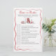Dans quelle mesure vos invités connaissent-ils la future mariée ? Cette carte de jeu de douche nuptiale That’s Amore "Over or Under?" est une façon amusante de tester les connaissances des invités avec des faits excentriques et des devis amusants. Conçu avec un arrière - plan blanc, un script rouge romantique et des illustrations de cuisine italienne fantaisiste, il s'intègre parfaitement à votre décor de douche thématique. Vous devinez si chaque relevé est terminé ou inférieur au nombre réel, rires garantis !