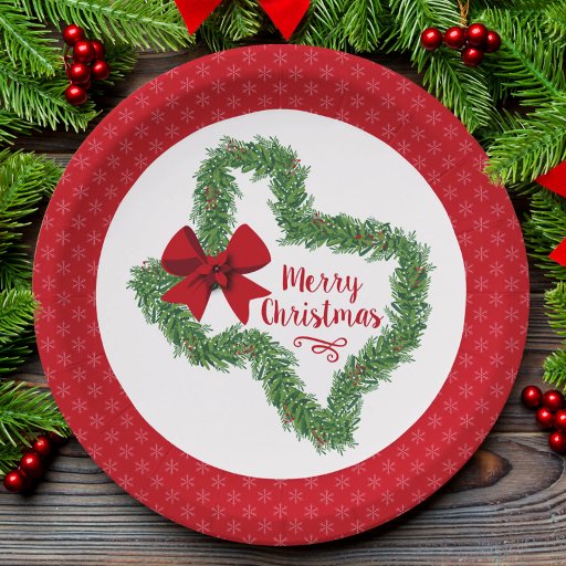 Préparez-vous pour les vacances de Noël au Texas avec cette couronne en forme d'état dans un motif à petite échelle. Wreath a de petites baies rouges ainsi qu'une chaîne de perles blanches qui le traverse avec un gros arc rouge avec un poinsettia au centre. Les mots "Joyeux Noël" disséminés dans le monde entier peuvent être changés en votre propre message ou nom. Produits correspondants disponibles.
