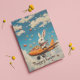 Papier Cadeau Joyeux pâques, lapin de Pâques marchant avec des o