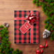 Ce design comprend une jolie coutume d'arbre de Noël, un script classique de calligraphie rouge simple, un motif classique de chèque-buffle, un emballage cadeau de Noël personnalisé, un emballage cadeau de Noël, un texte de police de typographie tendance, un style motif simple d'arbre de Noël, un modèle de ferme de campagne classique, un papier d'emballage de Noël personnalisé, avec un plaid de buffle rouge et noir