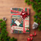 Ce papier d'emballage de Noël a un motif avec un thème nostalgique des années 50 vintage. Le design est richement détaillé, avec un collage d'images de vacances classiques dans les tons vert, or et blanc. Le motif comprend des illustrations de style vintage comme un Père Noël souriant, une femme glamour aux cheveux blonds, un bonhomme de neige avec une écharpe verte, un renne et un sapin pétillant. Il y a aussi des scènes d'un village enneigé, d'un ange de Noël, et des salutations festives comme "Joyeux Noël", "Laisse-le neiger" et "Bonjour" écrits en écriture élégante. L'ensemble est agrémenté d'une touche dorée qui lui confère une atmosphère luxueuse et festive. L'arrière - plan est un vert profond qui renforce l'atmosphère de vacances classique, tandis que les ornements, les flocons de neige et les poinsettias ajoutent à la richesse et à la profondeur du motif. Ce papier d'emballage évoque un sentiment chaleureux et nostalgique, parfait pour une fête de Noël vintage.