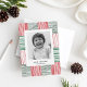 Envoyez des salutations de vacances chaleureuses avec cette carte "Joyeux Noël", avec une bordure rayée dessinée à la main dans des tons rouges et verts festifs. Le design simple et moderne encadre magnifiquement une photo de famille centrale, ce qui en fait un endroit parfait pour présenter un moment de joie. Avec son esthétique artistique et tendance, cette carte fait partie d'une collection de vacances cohésive qui comprend des étiquettes cadeaux assorties, des enveloppes, et plus encore pour créer un look saisonnier complet et élégant. Idéal pour les familles à la recherche d'une carte de vacances unique et personnalisée avec une touche de charme artisanal.
