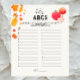 Faisant partie de la collection Caramel Apple, ce Baby ABCs Game est amusant pour tous les âges! Trouvez juste un mot par lettre et la personne qui gagne le plus ! Vous, l'hôte, déterminerez le temps alloué aux invités pour jouer. Tout le texte est personnalisable pour correspondre parfaitement aux détails de votre occasion ↣ cliquez simplement sur le bouton "Personnaliser".