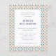 Célébrez le diplômé avec style grâce à ce faire-part de fête de fin d'études élégant et unique. Avec une bordure décorative inspirée des carreaux de faïence dans des tons de bleu et d'orange, ce design ajoute une touche de sophistication à la célébration. La disposition du texte centré met en valeur le nom du diplômé, l'école et les détails de l'événement dans une police moderne et épurée. Parfait pour les remises de diplômes de lycée ou d'université, ce faire-part allie un design intemporel à un style contemporain.