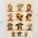Neuf portraits de personnages féminins stylisés sont disposés dans une grille 3x3, chacun portant un casquette unique et décoratif avec différents ornements comme des fleurs et des plumes. Leurs expressions sont sereines et contemplatives, avec des traits doucement crépités qui véhiculent une qualité onirique.