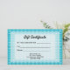 Certificat cadeau motif turquoise. Joli design pour un usage professionnel ou personnel. Personnalisez avec votre propre nom, adresse et détails.