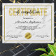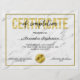 Marbre élégant et classe et effet bloc d'effet d'or avec le certificat d'achèvement de script. Format de lettre pratique Certificat d'achèvement de 8,5"x11" décerné aux étudiants, aux employés ou à toute personne pour avoir terminé un cours, une école, une formation ou un programme d'éducation. Ajoutez votre logo ou utilisez la fausse image de sceau d'or. Idéal pour tout domaine de carrière ou d'emploi... diplôme de l'école de cosmétologie, formation de salon de coiffure, esthétique, soins de la peau, sourcils, maquillage ou tout domaine d'études. Conception personnalisée en marbre blanc et gris arrière - plan avec cadres dorés. Récompensez les efforts de vos étudiants et de votre personnel avec ce certificat personnalisé et personnalisé. Customisez votre propre texte en ligne, et commandez des certificats personnalisés pour votre diplôme ou cérémonie de remise des prix. Laissez la zone de signature vide pour ajouter une signature ultérieurement, ou tapez votre nom et votre titre, et ajoutez toujours votre signature ci-dessus. Le nom d'Honoree peut être tapé ou la ligne vide peut être laissée pour ajouter des noms écrits ou imprimés à la main plus tard.