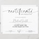 Certificat de fin de carrière professionnelle avec police de script élégante, parfait pour les certificats de réussite pour les cours de salon ou de spa. Vous pouvez également utiliser ce certificat minimaliste d'appréciation design pour n'importe quel type de diplôme, il suffit de modifier le texte pour répondre à vos besoins. Ce prix de cours de beauté comprend une police de calligraphie moderne et un jeu de couleurs noir et blanc, créant un magnifique certificat de conception d'achèvement.
