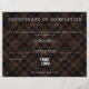 Certificat d'achèvement maniable et élégant avec motif Tartan. Couleurs : noir, marron. Assurez-vous d'écrire à la main avec un stylo blanc ou argent.