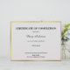 Tout le texte peut être modifié sur ce certificat de fin. Une ligne est proche du bas pour le nom du signataire. La fausse bordure en or n'est pas faite de papier peint.