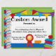 Certificat d'attribution d'une bourse d'école pour enfants personnalisable Taille de la lettre 8.5"x11" Utilisez ce prix coloré pour récompenser les élèves pour un travail bien fait à n'importe quel cours, école ou programme. Conception personnalisée avec des piles de livres, des drapeaux de bannières et un sceau de ruban rouge. Idéal pour l'enseignement préscolaire, la pré-maternelle, la maternelle, l'école primaire comme récompense pour les réalisations académiques en mathématiques, sciences, lecture, une présence exceptionnelle parfaite, un grand effort sur l'équipe sportive pour un athlète ou toute autre utilisation! Montrez votre fierté et votre enthousiasme pour les efforts de vos étudiants et de votre personnel avec ce certificat personnalisé et personnalisé. Ajoutez votre propre texte en ligne et commandez des certificats personnalisés pour votre cérémonie. Laissez la zone de signature vide pour ajouter une signature ultérieurement, ou tapez votre nom et votre titre, et ajoutez toujours votre signature ci-dessus. Le nom d'Honoree peut être tapé ou la ligne vide peut être laissée pour ajouter des noms écrits ou imprimés à la main plus tard.