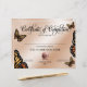 Certificat d'achèvement Prix Cours d'achèvement avec papillon monarque pour coach de vie, cosmétiques, salon de beauté, ongle, maquilleur, coiffeur...