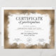 Papier Certificat de participation Gold Parties scintilla