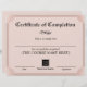 Papier Certificat de Récompense de Complétion Rose Pâle
