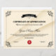 Papier Certificat de reconnaissance