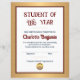 Certificat d'excellence de l'étudiant de l'année Le Prix sur mesure est un excellent moyen de montrer à vos étudiants votre reconnaissance pour le travail acharné qu'ils ont accompli. Le certificat peut être personnalisé avec vos informations sur l'étudiant et ce pour quoi ils sont reconnus. Personnalisez-le.