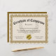 Papier Certificat de Réussite Or Personnalisable 21,59x27