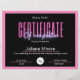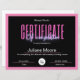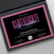 Présentez notre Modèle de certificat d'achèvement - un design polyvalent et modifiable, parfait pour des cours tels que les cours de Lash, de Nail, de Fabrication de perruques, de Maquillage et de Cheveux. Avec des lettres néo frappantes sur un arrière - plan noir et rose élégant, ce modèle vous permet d'ajouter facilement votre logo et le nom du cours pour une touche personnalisée. Célébrez les réalisations de vos élèves dans le style