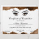 Certificat d'achèvement Maquillage artiste Wink Eye Beauté Salon Lash Extension Cours d'achèvement