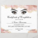 Certificat d'achèvement Maquillage artiste Wink Eye Beauté Salon Lash Extension Cours d'achèvement