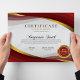 Honor achievement in style with this Elegant Red & Gold Certificate of Excellence Template, designed to deliver a bold, modern, and distinguished presentation. Featuring flowing red and gold wave accents, a refined neutral background, graceful script typography for the recipient’s name, and a classic gold award seal, this certificate instantly communicates prestige and accomplishment. The balanced layout keeps the recipient’s name as the focal point while providing clearly defined sections for award details, date, and signature. Its sleek and professional design makes it ideal for corporate recognition, employee awards, academic excellence, leadership honors, training completions, ministry acknowledgments, volunteer appreciation, and special milestones.