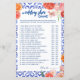 Ajoutez un peu de charme méditerranéen et amusez-vous à vos festivités mariages avec "That's Amore Mediterranean Blue Tiles & Orange Mariage Shoe Game" ! Doté d'un design époustouflant inspiré du carrelage bleu méditerranéen traditionnel et d'accents oranges vibrants, ce jeu est la façon idéale de divertir les clients à votre réception ou douche nuptiale.