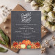 Un faux arrière - plan de tableau de bord rustique. Décoré de fleurs citrouilles et orange et jaune. Personnalisez et ajoutez les détails de la fête. Texte : Grateful and Blessed. 1 feuille = 1 invite imprimé bord à bord.