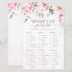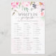 Ce charmant jeu de douche nuptiale, conçu avec un délicat thème aquarelle floral, est une façon amusante d'attirer les invités et ajouter une touche de fantaisie à la célébration. Les joueurs recherchent leurs sacs à main pour divers objets, gagnant des points pour chaque match. C'est une activité simple mais divertissante qui fera rire et deviner tout le monde ! Customisez le jeu avec votre propre touche personnelle pour créer une expérience unique et mémorable.