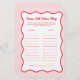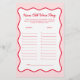 Vous recherchez des idées de jeux de baby shower ? Essayez notre "Cherry On Top Baby shower Devinez The Age Game !" Parfait pour des jeux de baby shower uniques, il s'adapte à la cerise sur le thème du baby shower supérieur. Célébrez votre petit avec le sentiment "Elle est la cerise sur le dessus", idéal pour les idées de baby shower de Saint Valentin ou un thème de baby shower de février. Que vous planifiez un baby shower arc ou un thème de baby shower fraise, ce jeu est une façon amusante d'ajouter du charme à votre petite cerise sur le thème du baby shower principal.