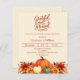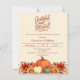 Arrière - plan beige moelleux. Décoré de fleurs citrouilles et orange et jaune. Personnalisez et ajoutez les détails de la fête. Texte : Grateful and Blessed. 1 feuille = 1 invite imprimé bord à bord.