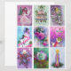 Une feuille de clipart avec des cartes de noël vintage pourpre redimensionnées à 2,5 x 3,5 pouces chacune pour les lettres de poche, les étiquettes de noël do-it-yourself, les étiquettes cadeaux, les journaux à puces, etc.