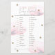 Cette élégante carte de jeu de baby shower nuage 9/nuage neuf "nom que bébé animal" dispose d'un arrière - plan blanc avec des nuages roses moelleux en aquarelle. Personnalisez-le selon vos besoins. Vous pouvez trouver des produits correspondants dans mon magasin. TOUCHE DE RÉPONSE : SWAN : L, CHÈQUE : I, HAWK : N, OWL : E, APE : A, CHEVAL : O, KANGAROO : G, GARDE : D, SOURIS : J, GIRAFFE : C, DEER : M, TURQUIE : F, PIG : K, BEAVER : H, MOSQUITO : B