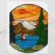 Cette belle photo présente ma conception de vitrail originale de voilier sur un lac de montagne.