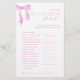 Une douche nuptiale est plus qu’une célébration, c’est un rassemblement des amis et de la famille les plus proches de la mariée, des gens qui ont partagé dans son rire, des jalons et des moments inoubliables. Le jeu How Well Do You Know The Bride? est un moyen sincère d'honorer ces souvenirs, en testant exactement combien les invités connaissent vraiment la femme au centre de tout. Avec des arcs délicats rose qui ajoutent un air de grâce et de charme, ce jeu invitation les invités à se rappeler des détails spéciaux - son film préféré, où elle a rencontré son fiancé, ou les petites bizarreries qui la rendent unique. Qu’il s’agisse d’un brunch avec des mimosas ou d’une compétition légère lors de l’ouverture de cadeaux, c’est une belle façon de réfléchir sur le voyage qui a mené à ce moment spécial. Pour un évènement de style homogène, jumelez ce jeu avec les invitations à la douche nuptiale, le décor et les petits cadeaux. Vous recherchez une version personnalisée ou une variante de couleur ? Créons quelque chose juste pour vous. Copyright Anastasia Surridge, tous droits réservés.