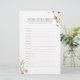 Faites fleurir votre douche nuptiale avec le plaisir et l'excitation avec notre Fleur sauvage d'aquarelle jeu de course de mot nuptiale ! Ce merveilleux jeu de course de mot nuptiale apportera joie et rire à votre journée spéciale! Regardez votre fête de mariage et vos invités s'unir en groupe ou travailler en solo pour démêler les mots sur le thème du mariage sur chaque carte magnifiquement conçue. Le premier à déchiffrer correctement les mots mélangés gagne ! C'est l'activité parfaite pour votre douche de marée boho qui fera sourire tout le monde. De plus, l'adorable aquarelle à motifs floraux en fait un souvenir qu'ils voudront conserver. Offrez à vos invités une expérience amusante et mémorable avec ce jeu de douche nuptiale incontournable !