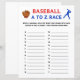 ⭐️ Qu'est-ce que c'est : Baseball A To Z Race Game est un jeu de fête. Écrivez un mot lié au baseball qui commence par chaque lettre de l'alphabet. Première Personne Finit Gagne !