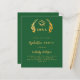 Arrière - plan vert émeraude. Une fausse couronne de laurier d'or classique et une casquette de graduation. Personnalisez et ajoutez l'année, le nom et les détails. Texte jaune. 1 feuille = 1 invite imprimé bord à bord.