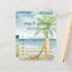 Bébé à bord ! Invitation pour une baby shower - parfait pour une baby shower d'été. Thème plage. Le design aquarelle présente un océan et une scène de plage avec planche de surf, palmier et chapeau d'été.