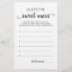 Achetez ce jeu et profitez d'une carte Guess the Sweet Mess de haute qualité pour votre événement! Design noir et blanc neutre pour le genre.