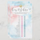 Cette carte de jeu de baby shower dispose d'une police moderne script sur arrière - plan d'aquarelle rose et bleu avec couronne or et éclaboussures, parfait pour une surprise! Utilisez cette carte pour votre soirée révélatrice de genre unique!