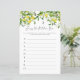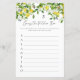 Cette carte "Devinez l'objet de cuisine" sur le thème des citrons est facile à personnaliser en utilisant le modèle Zazzle fourni. Que vous organisiez une fête de mariage pour une amie ou un membre de la famille, célébrez la charmante future mariée qui trouve son âme sœur avec cette carte de jeu inspirée des agrumes pour que vos invités la remplissent. Veuillez contacter le concepteur pour toute variation de ce design ou pour tout produit assorti.