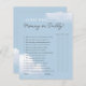 Célébrez le baby shower avec le jeu interactif "Maman ou Papa Guess Who", créant des souvenirs joyeux et l'excitation parmi les invités. 14 questions attrayantes où les invités devinent qui chaque déclaration décrit, la mère ou le père. Le design du nuage de ciel bleu clair 9 crée une ambiance minimaliste et charmante pour l'événement, pour une journée remplie d'amour, de joie et de moments chéris. Utilisez les outils de conception pour customiser le texte et les polices.