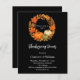 Un arrière - plan de couleur noire. Décoré de couronne à thème automne avec feuillage orange et citrouilles. . Avec le texte : Thanksgiving Dinner écrit avec un script de style moderne écrit à la main. Personnalisez et ajoutez les détails. 1 feuille = 1 invite imprimé bord à bord.