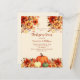 Arrière - plan beige moelleux. Décoré de fleurs citrouilles et orange et jaune. Personnalisez et ajoutez les détails de la fête. 1 feuille = 1 invite imprimé bord à bord.
