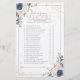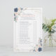 Jeu de douche nuptiale moderne et élégant "marié ou marié devinez qui" avec des flores d'aquarelle bleu poussiéreux et rose vif, typographie de script lettré main et fausse poussière d'or. imprimer tel quel ou personnaliser vos questions de jeu. Fait partie d'une suite de collection. Suite Veiw ici : https://www.zazzle.com/collections/light_dusty_blue_blush_pink_gold_wedding_suite-119156539216388938 Copyright Anaastasi Surridge pour les Invitations élégants, tous droits réservés.