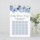 C'est un jeu de Baby shower Floral Dusty Blue. *Baby shower Bingo - Les invités rempliront les blancs avec les cadeaux qu'ils pensent que la mère recevra. Quand la mère s'ouvre un cadeau qui est une de leurs suppositions, ils le marqueront avec un X. Quand ils auront 5 de suite, ils bingo ! Le premier à obtenir 5 de suite, gagne !