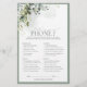 Jeu de douche nuptiale moderne et élégant "What's on Your Phone" avec des feuilles botaniques vert gris luxuriants et des eucalyptus, et bordé d'un vert gris-bleu eucalyptus pâle. Personnalisez vos questions en noir doux, accentué par une belle calligraphie à la main moderne. Partie d'une suite coordonnée. Voir la suite ici : https://www.zazzle.com/collections/elegant_eucalyptus_green_botanical_bridal_shower-119330045467288535 Contacter le concepteur pour les produits correspondants. Copyright Anastasia Surridge pour Invitations élégants, tous droits réservés.