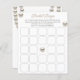 Ajoutez de l'excitation à votre douche nuptiale avec ce jeu de Bingo Elegant Pearl Fête des mariées ! Ce jeu amusant et interactif permet aux invités de remplir les carrés avec des cadeaux potentiels que la mariée peut recevoir. Alors qu'elle ouvre chaque cadeau, les joueurs marquent leurs devinettes, dans le but d'obtenir cinq dans une rangée et de crier "BINGO !" Doté d'un design perle intemporel, ce jeu est parfait pour les douches nuptiales sophistiquées et de classe. Un must pour rendre votre événement spécial et attrayant !