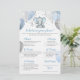 Cet adorable jeu de baby shower présente un éléphant de bébé bleu et gris avec des ballons et des confettis. Cochez les articles sur votre téléphone et additionnez les points. Le dos est doté d'un éléphant, et personnalisé avec le nom de la mère et la date de la douche sur un arrière - plan d'aquarelle bleu doux. Facilement customisé pour votre événement en cliquant sur "Personnaliser".