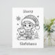 Page de Noël avec un elfe adorable tenant une page de coloriage simple en noir et blanc. Carte de Noël Color Me. Vous pouvez modifier le texte sur si vous le souhaitez dans la zone de personnalisation.
